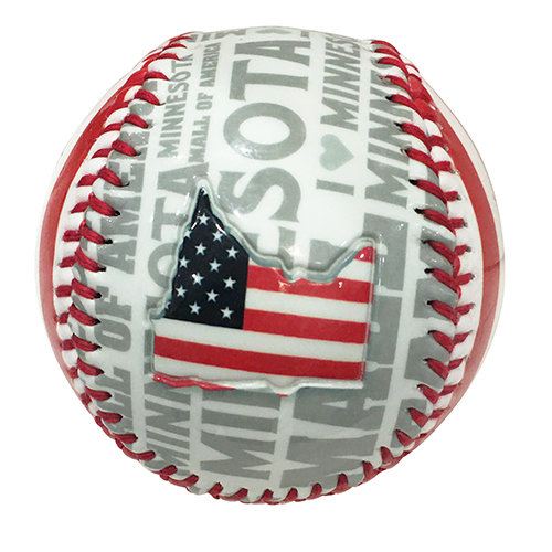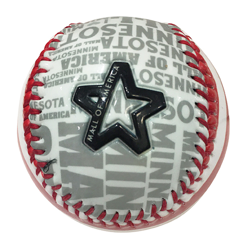 Our Mall of America Baseball has red and white stripes as well as Mall of America and Minnesota in gray print around half the ball. There are images of the Mall of America logo and the flag version of the state of Minnesota!Price