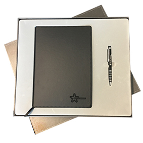 Boxed gift set comes with Journal that has embossed MOA logo on bottom right corner, and a MOA Stylus Pen.Price